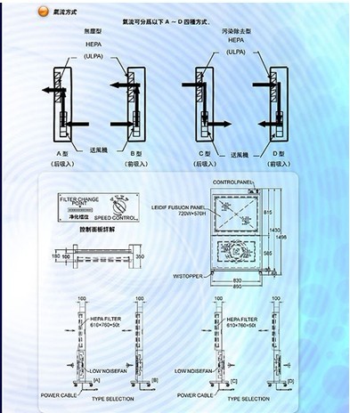 1、 有無塵式(A,B型)和污染除去式(C,D型)供用戶選擇使用。