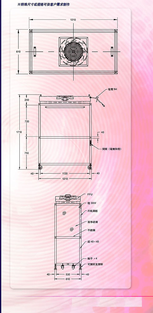 超凈工作臺(tái)/潔凈工作臺(tái)又稱為無(wú)塵無(wú)菌操作臺(tái)(CLEAN BENCH),CLEAN BENCH 可在作業(yè)臺(tái)上做出局部的清凈空間,所以只要管理運(yùn)用得宜則其為zui具經(jīng)濟(jì)性又可得到高度清凈化空間的作業(yè)臺(tái),因此廣泛被使用于半導(dǎo)體工業(yè),高精密工業(yè)等工業(yè) 性用途以及醫(yī)療、藥品、生化生物科技等用途,其用途十分廣泛多樣,因此除了標(biāo)準(zhǔn)品外亦可依其使用目的而予以設(shè)計(jì),制作。